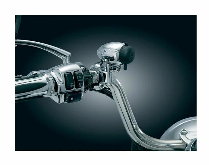 Perfect for plugging in accessories like cellphones, iPod, GPS, air pump, etc. Dressed up like a silver bullet light housing for a sleek look. Includes everything needed to connect directly to a battery or accessory wiring harness. Mount it above your handlebars or check for tank clearance & mount it below.Β Available with handlebar clamps for 1″ or 1 1/4″ diameter handlebars.