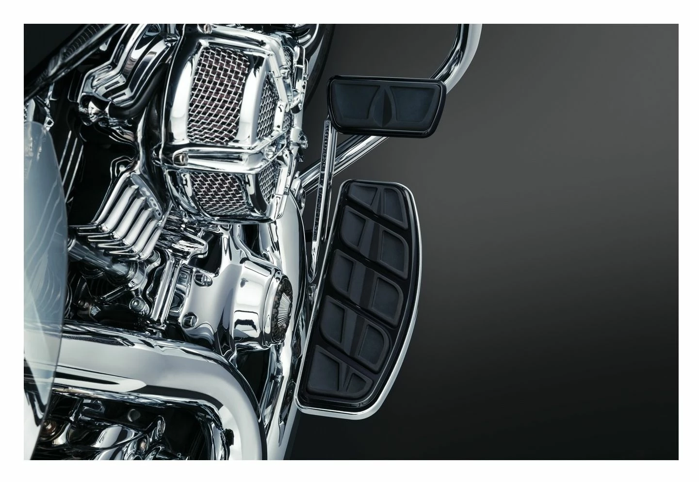 Modern, stylish and functional, the Kuryakyn Kinetic Brake Pedal Pad is designed to keep you moving. With the perfect blend of vibration-dampening rubber and contrasting metal in chrome or gloss black finishes to set your bike apart. For the complete collection, add the Kuryakyn Kinetic Shift Peg, Footpegs, and Grips (available separately).