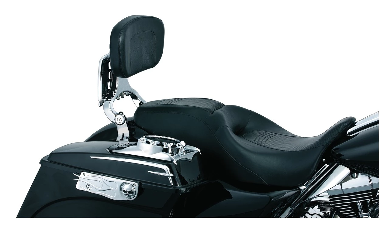 Introducing the first, truly multipurpose backrest and luggage rack system, available only from Kuryakyn. Once installed, no tools are needed for adjustments, making the switch from rider to passenger backrest a snap. Full adjustability will help you enjoy those longer rides and with the incorporated luggage rack, carrying all your stuff just got a whole lot easier.