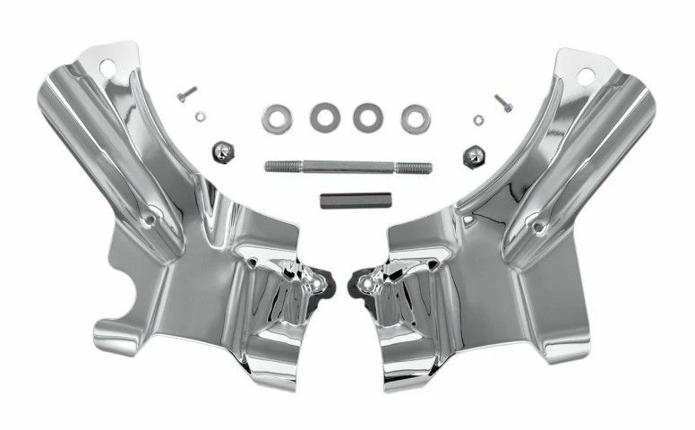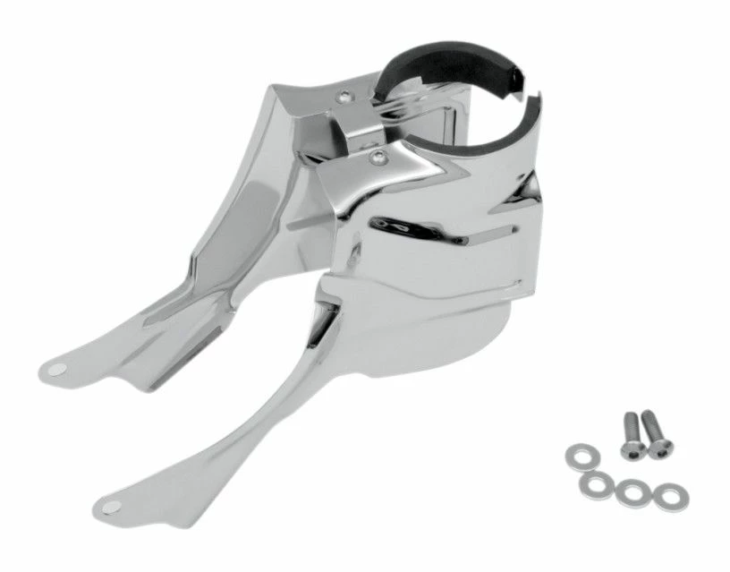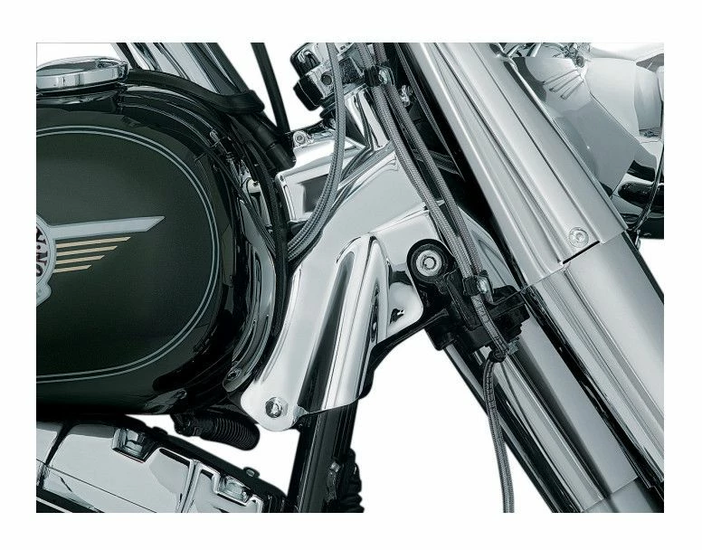 Masking the roughly finished forged frame neck on a Softail is now as easy as a few minutes of your time. Kuryakyn has designed a smooth and cleanly contoured set of stamped steel neck covers. These beautifully chromed covers mask the wiring, giving your bike’s neck a finished appearance.