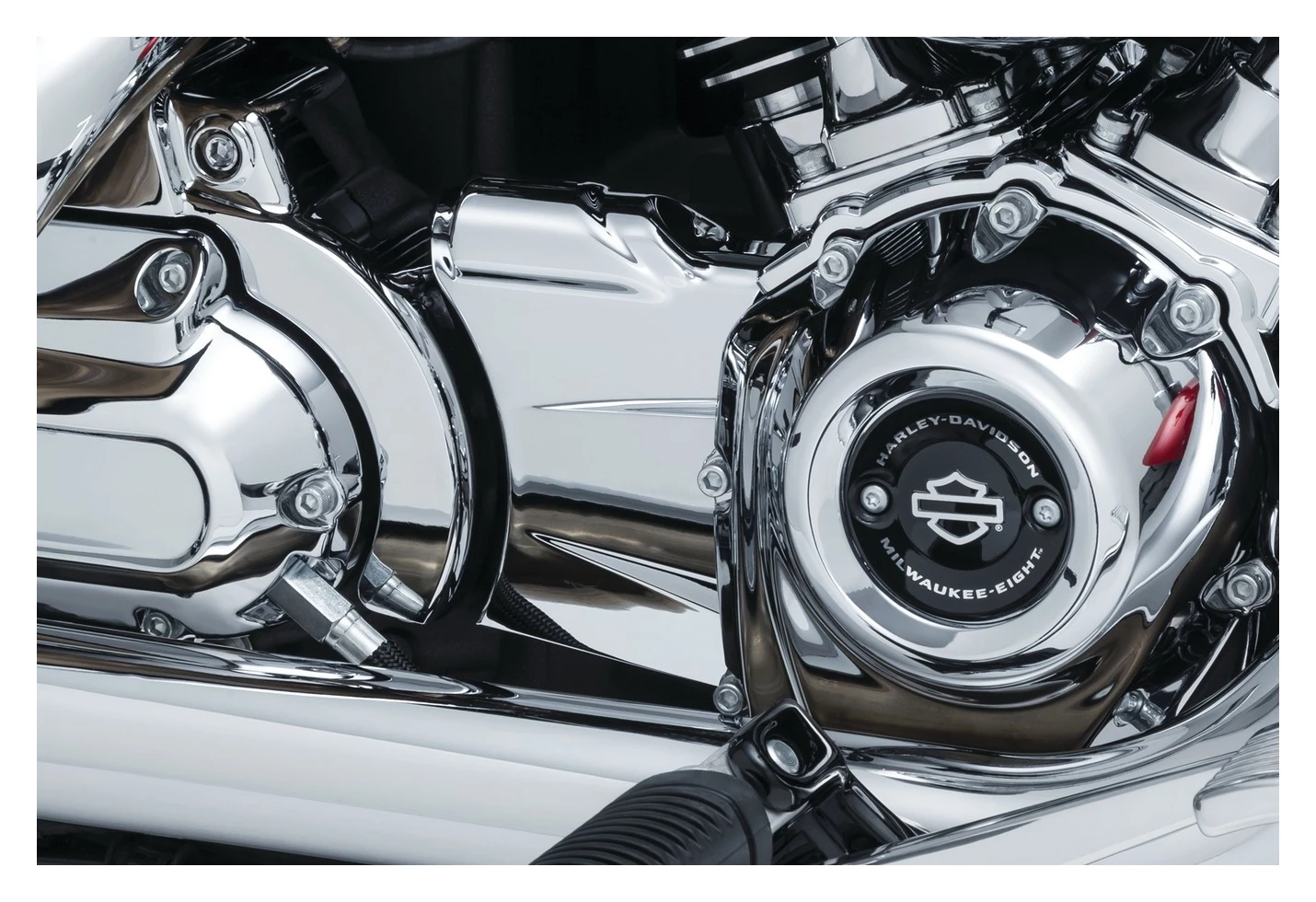 This bolt-on cover adds a polished, sculpted appearance while concealing the oil lines in the area between the cam cover and side of the transmission cover.