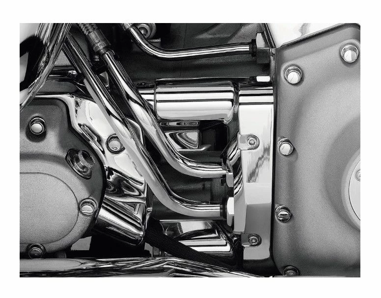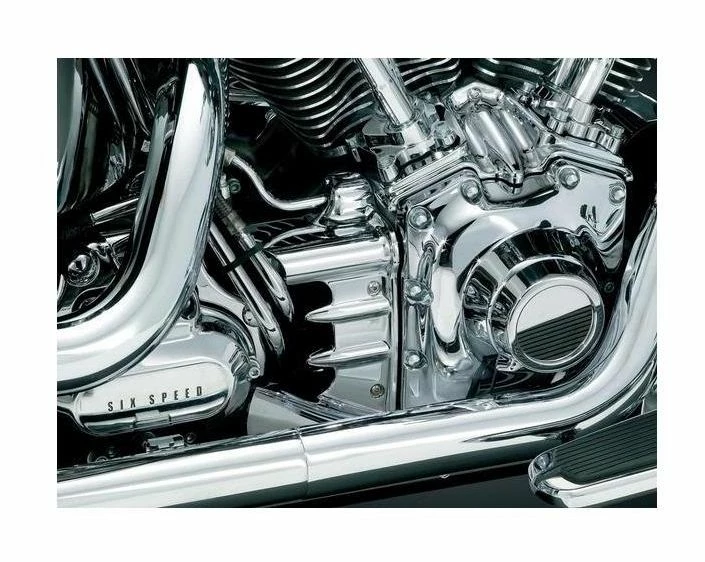 Blanket the area between the cam cover and transmission with this cover. Stock chrome oil lines exit through the cover for a high-tech appearance. Installs easily so you are back on the road in no time at all.