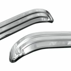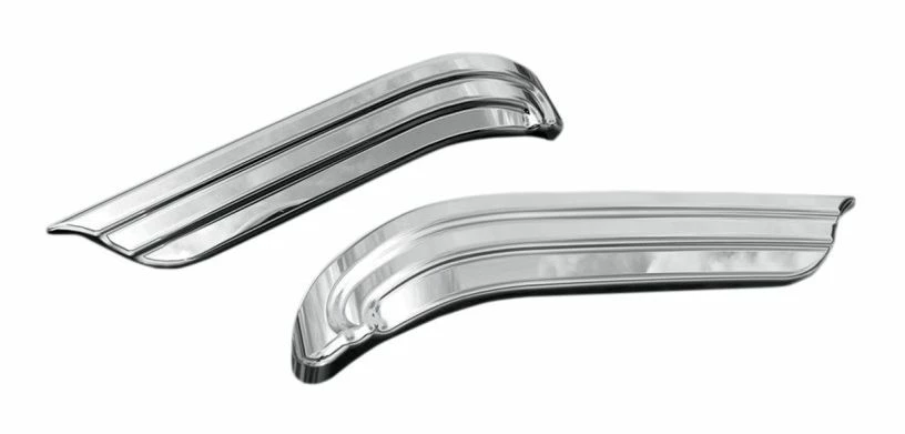 Because of its location, the plain black swingarm on a Touring rig can easily fade into the background, but it can take center stage when adorned with these sleek chrome accents. Besides their flash and brilliance, the louvered appearance and sweeping lines add new life and flair that is sure to impress. Accent installation requires no tools and just a few minutes of your time.
