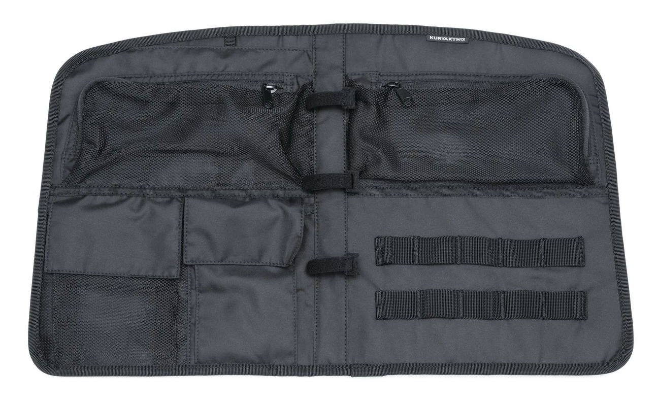 This Trunk Lid Organizer has been completely redesigned from the original version. Now, it’s better and more secure than ever! Kuryakyn ditched the original adhesive-mounted design for extra-secure lid-mounted snap tab attachments reinforced by high-strength hook-&-loop fasteners. Additional features include three separate storage pockets for optimum organization, and a a separate MOLLE-integrated tool roll/Dopp kit.