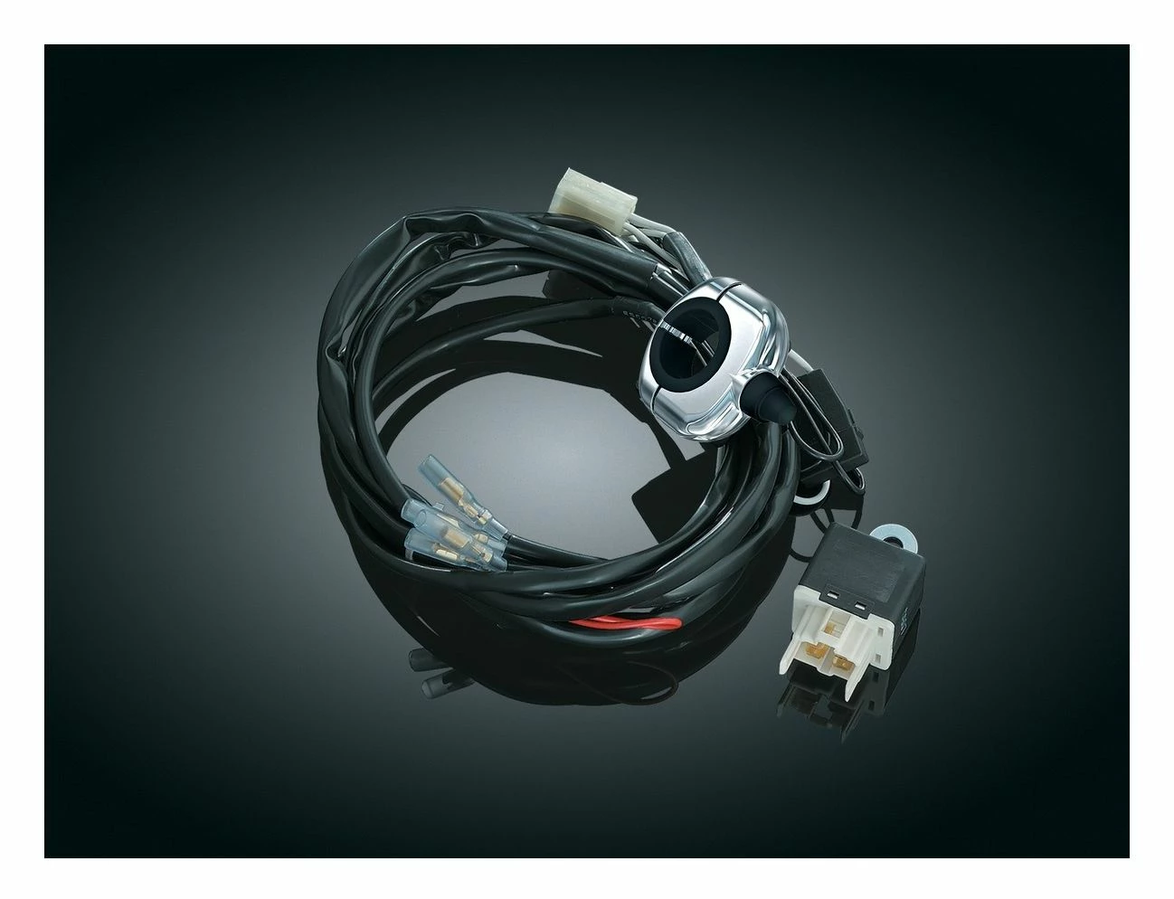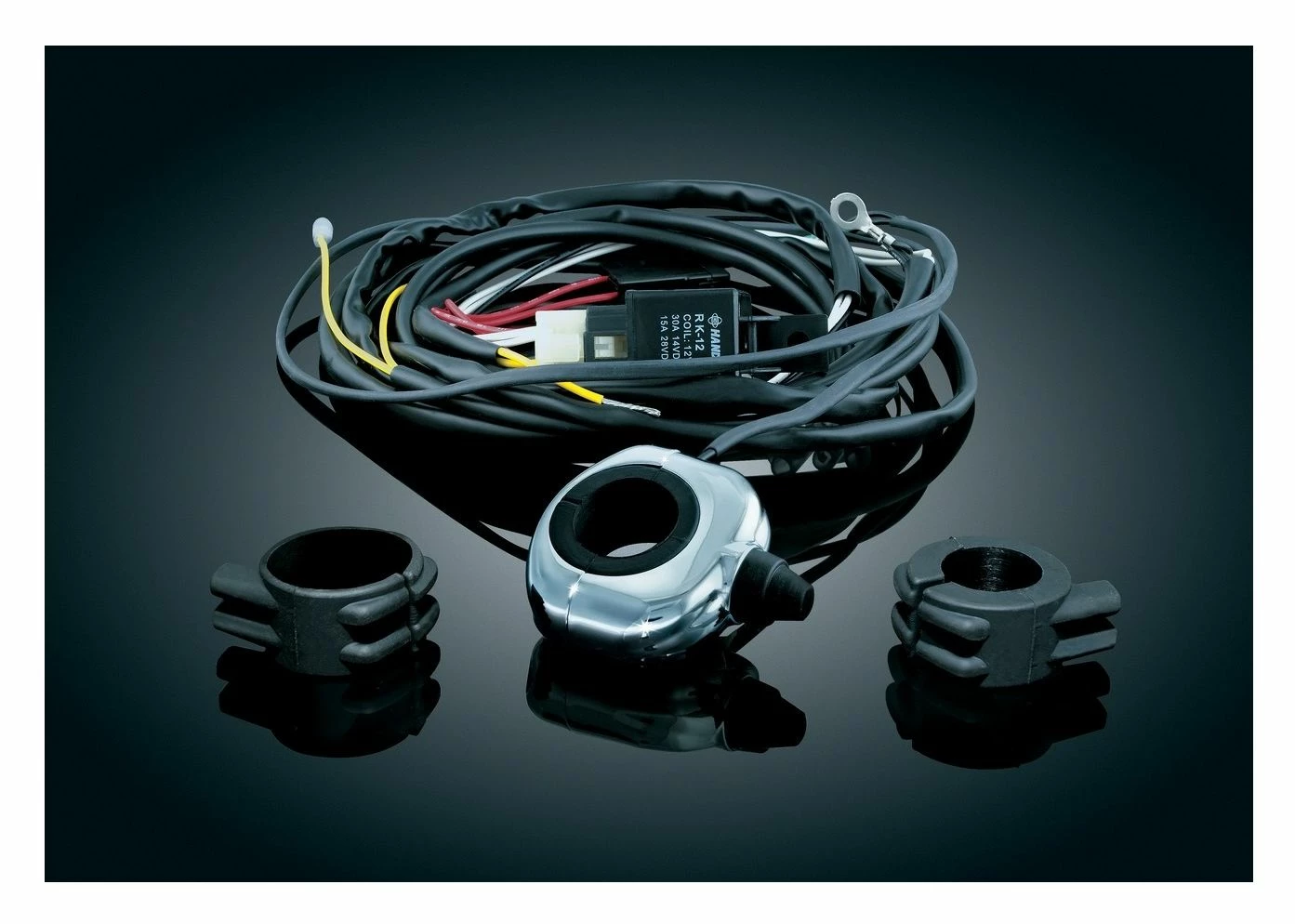 Kuryakyn makes it easy to wire your new driving lights the right way. Eliminate the risk of overloading existing circuits on your bike by adding an independent fused relay circuit to power your driving lights or other accessories. Available with a super-clean handlebar mounted push-button switch, these kits make it easy to power-up your lights whenever theyβre needed.